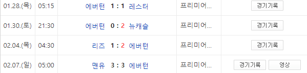 에버튼은 최근 4경기 성적이 1승 2무 1패로 다소 저조한 모습입니다. 그렇지만 맨유와의 경기에서도 3:3 동점을 이끌어낼 정도로 저력이 있는 팀입니다.