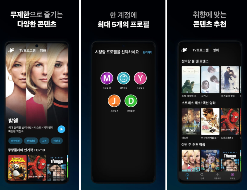 다운로드는 앱스토어, 플레이스토어에서 쿠팡플레이를 다운받아 실행하실 수 있습니다.