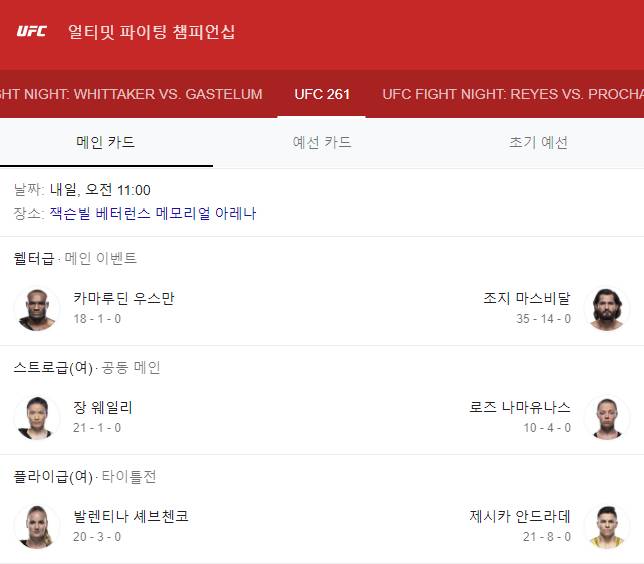 ufc 261 대진표