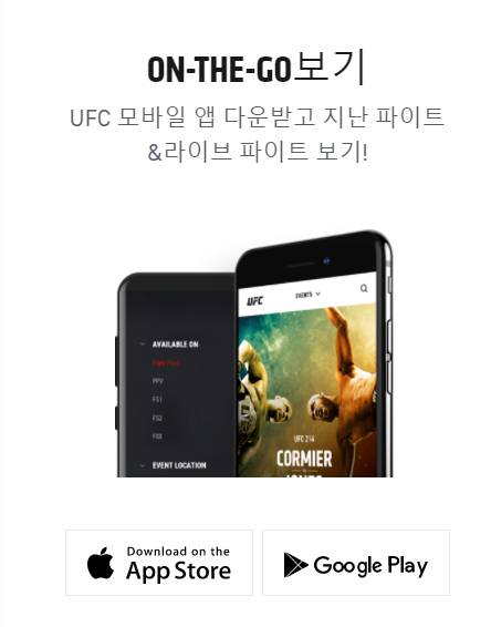 ufc 중계를 보는 또하나의 방법은 ufc 모바일앱인 온더고(on-the-go)를 이용해보실 수 있습니다. 지난파이트경기와 라이브파이트경기를 온더고에서 시청해보실 수 있습니다. 앱스토어와 구글플레이 등에서 다운로드 받아서 이용해보실 수 있습니다.