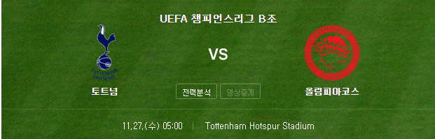 이번 토트넘과 올림피아코스의 챔스 경기 중계와 함께 즐거운 시간을 보냈으면 합니다.