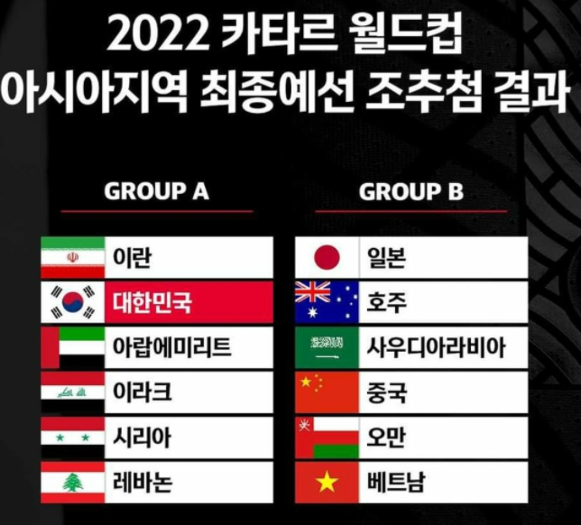 한국 축구 국가대표팀은 이라크, 레바논, 시리아, 이란, 아랍에미리트와 같은조에 포함되면서 중동의 침대축구를 어떻게 극복하는지가 관건입니다. 선제골을 내어주게 되면 무한 침대 축구를 보게 될 가능성도 있습니다. 가능한한 초반에 선제 득점을 올리면서 리드를 가져가는게 최종예선 통과의 키포인트라 할 수 있겠습니다.