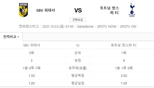 유로파컨퍼런스리그 토트넘 SBV 피테서 경기 중계안내