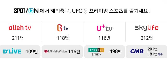 이번경기는 SPOTVON을 통해 보실 수 있습니다. 스포티비온의 채널번호, 중계방송 시청하는 방법은 지난 글에 잘 안내가 되어 있습니다. 아래 글을 확인해보시기 바랍니다.