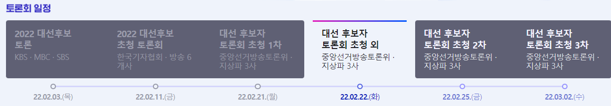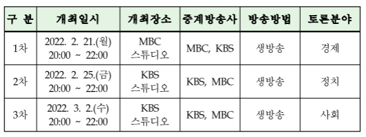 - 2월 3일 (목) 20:00 - 이재명, 윤석열, 안철수, 심상정