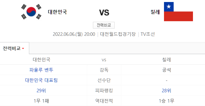 한국 칠레 축구 프리뷰