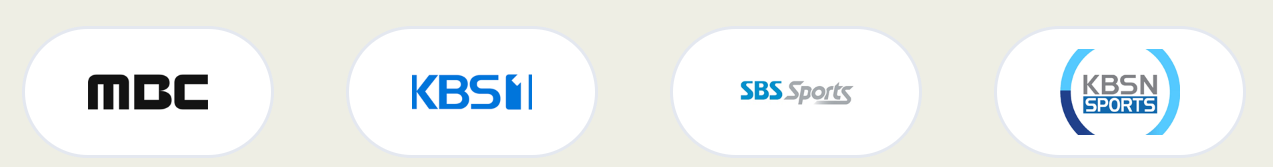 mbc sports, sbs, kbs2, mbc, kbs1, sbs sports, kbsnsports 등을 통해 주요 경기를 시청해보시기 바랍니다.