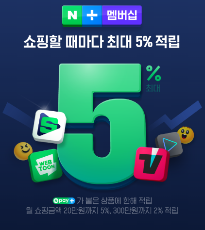 네이버멤버십 플러스 서비스는 한달 무료 서비스도 제공하고 있기 때문에 위 서비스 역시도 한달 무료로 체험이 가능합니다. 뿐만 아니라 네이버페이 5% 적립도 매우 크기 때문에 쇼핑에서도 활용해보시면 좋겠습니다.