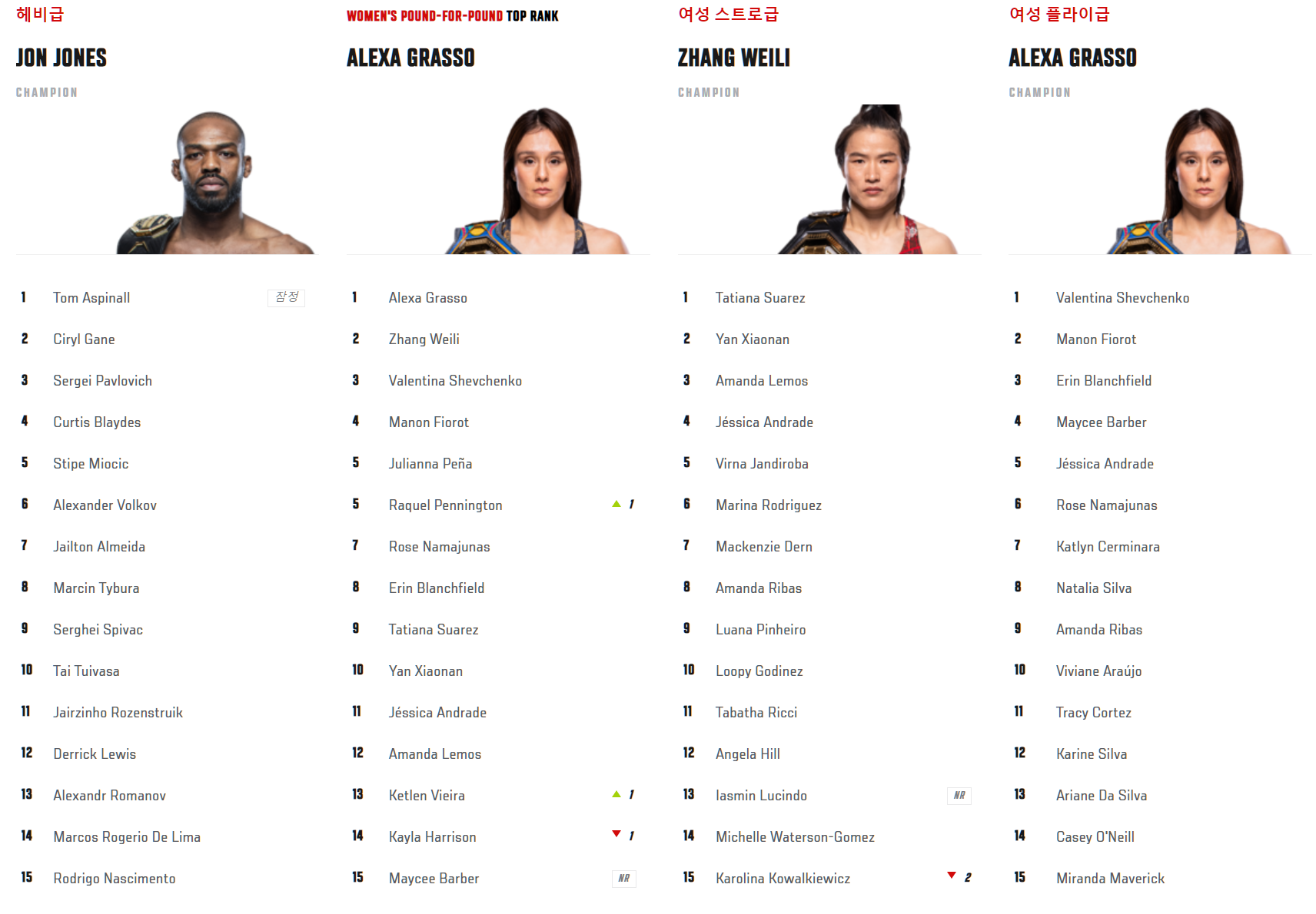UFC 선수 랭킹은 공식 홈페이지 랭킹 사이트를 통해 확인가능합니다.