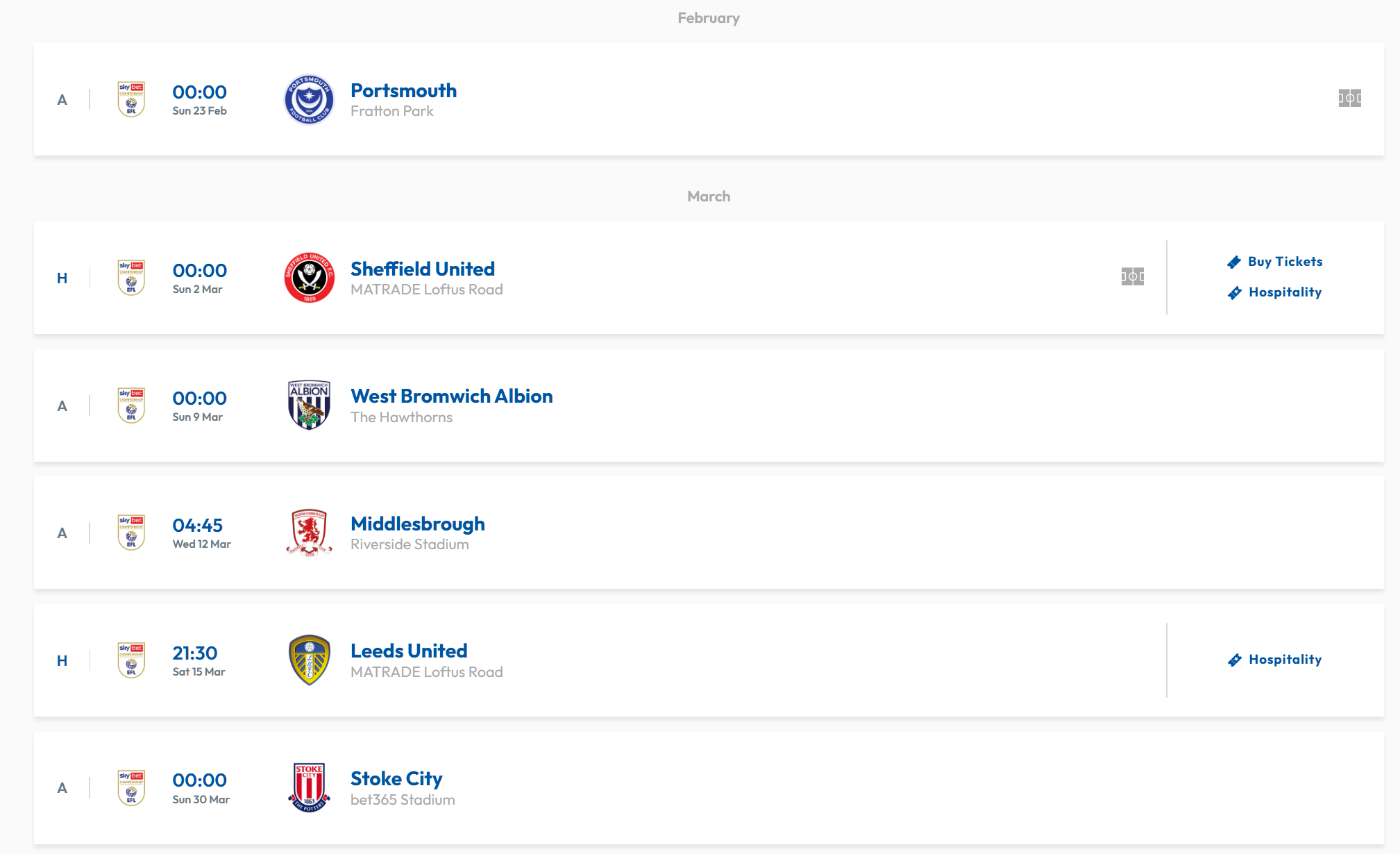 qpr 축구 팀의 경기 일정은 qpr 공식 홈페이지 매치 스케줄을 통해 확인해보실 수 있습니다.