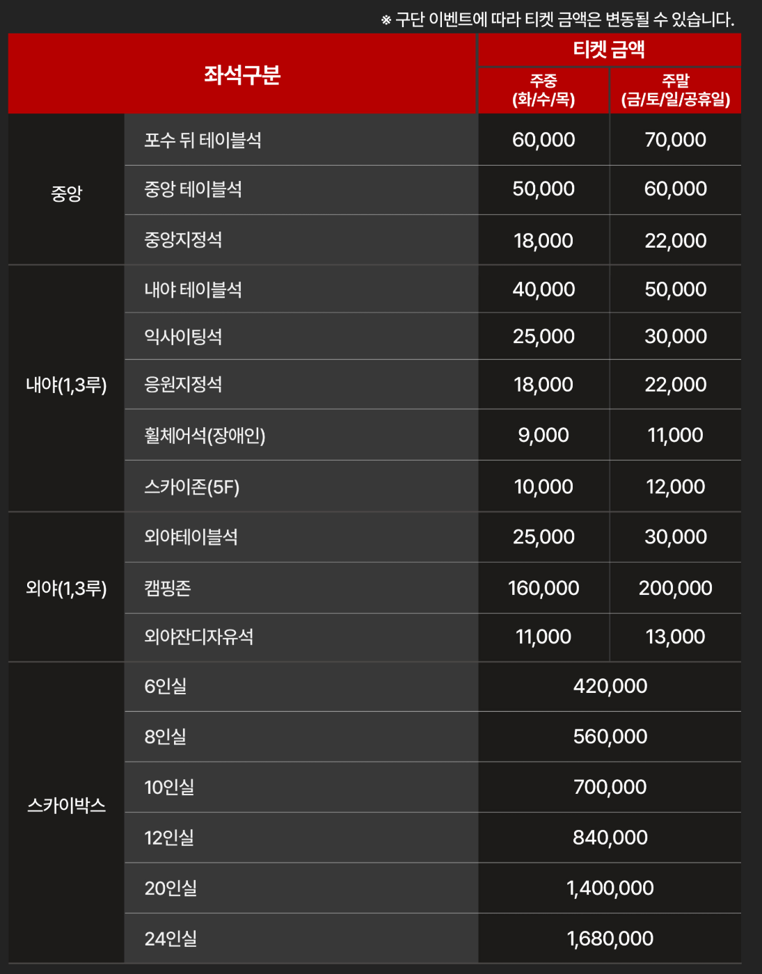 kt 야구 경기 티켓 가격은 일반석 기준 10000원부터 시작됩니다. 아래 가격표를 확인해보세요.