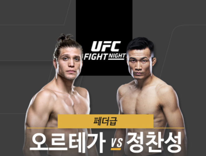 정찬성과 오르테가의 경기는 UFC Fight Night 경기로 10월 18일 (일)요일에 매치가 이루어지게 됩니다.