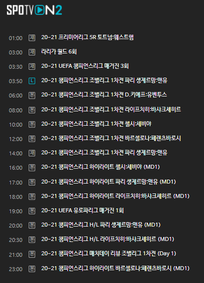 UEFA 챔피언스리그는 대부분 경기가 우리나라 시간으로 새벽 3시~4시사이에 열리게 됩니다. 본경기를 시청하는게 쉽지 않은 경우가 많은데요. 챔피언스리그 중계는 다음과 같이 예정되어 있습니다.