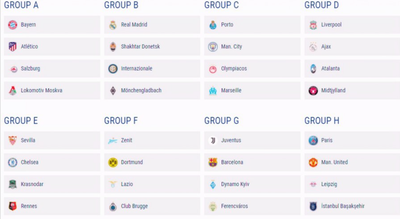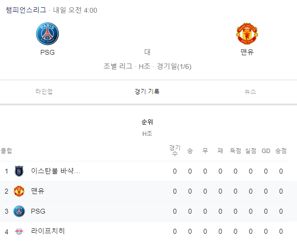H조 : PSG, 맨유, 라이프치히, 이스탄불 바샥셰히르