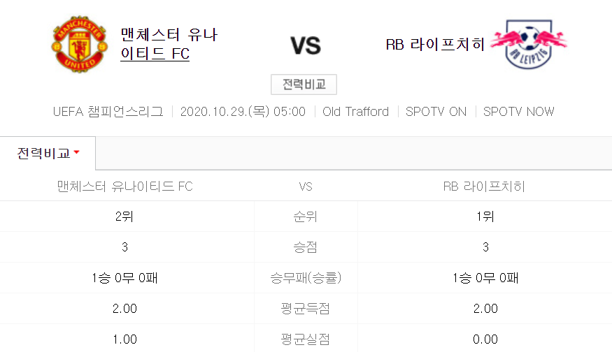 맨유와 라이프치히 두팀의 경기는 10월 29일 목요일 새벽 5시에 올드트래포드에서 펼쳐지게 됩니다. 맨유의 홈구장인 만큼 맨유의 우세가 점쳐지는 경기이기는 하지만 경기는 지켜봐야 결과를 알 수 있을 듯 합니다. 최근 맨유의 분위기도 썩 좋지 않기 때문에 황희찬 선수의 라이프치히가 강하게 나온다면 승리를 가져오게 될 가능성도 높습니다.