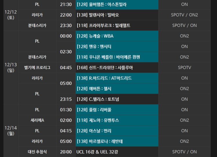 손흥민선수가 출전하게 되는 epl 경기 토트넘 핫스퍼의 경기는 무료로 보실 수 있습니다. 스포티비채널, 스포티비온을 통해서 시청가능합니다. 12월 13일 23시부터 펼쳐지게 되는 경기이니 시청시간도 적절하고 보시기에 아주 좋을듯 합니다.